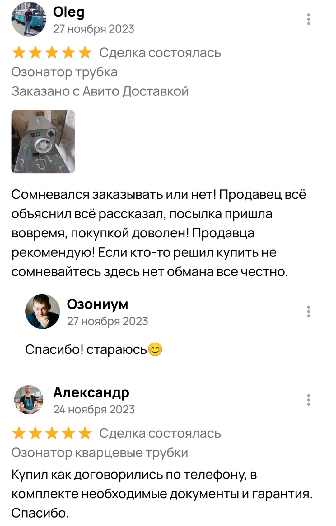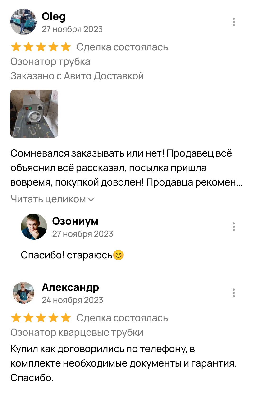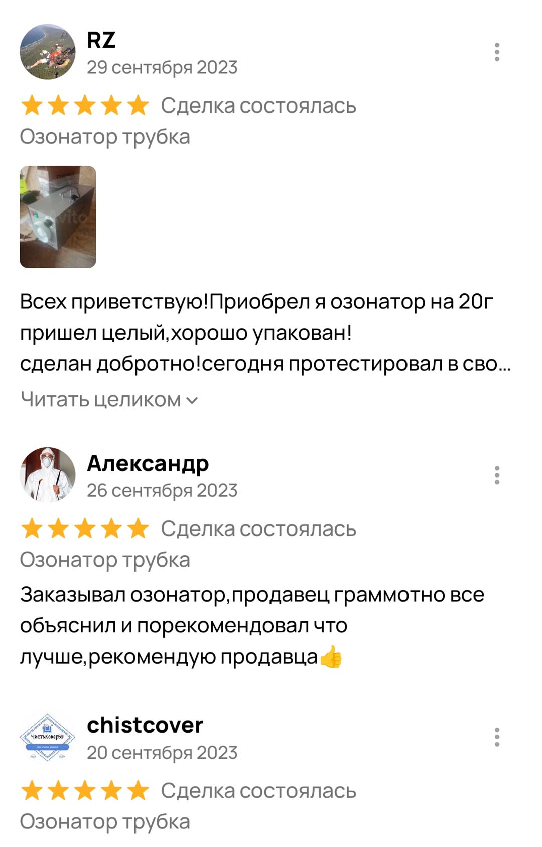 • Каждый озонатор проходит строгий контроль и сопровождается полным пакетом документов